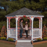 The screen package for the 12 ft. Vinyl Octagon Gazebo comes with a sturdy aluminum door with door handle and closer. Screen panels consist of an aluminum frame with fine-mesh screening.