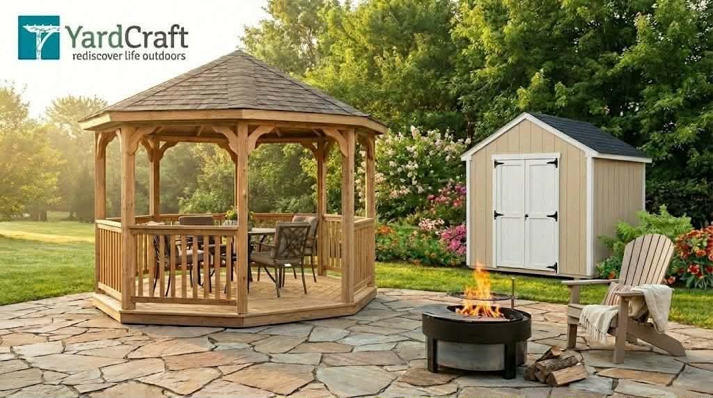 Add a touch of elegance to your patio, backyard, or other outdoor space with a beautifully handcrafted gazebo, pergola, or pavilion from YardCraft.